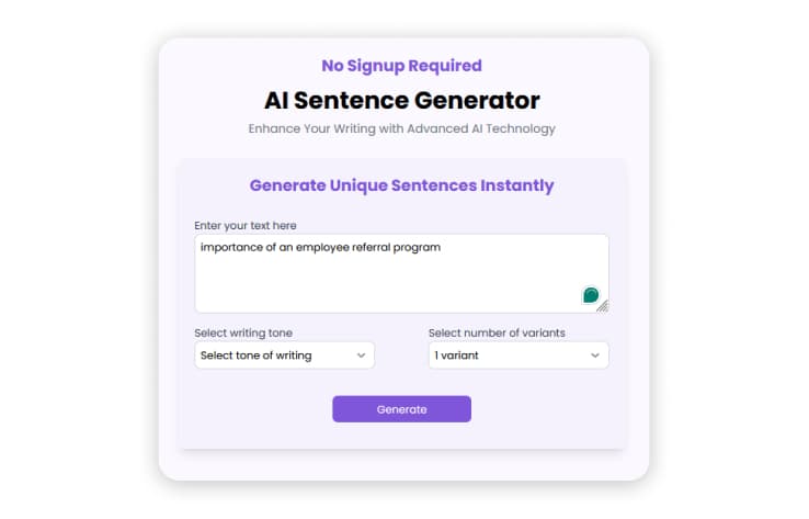 Answer: The tool allows you to choose from various tones and styles, such as formal, casual, professional, and persuasive, to match your content's needs.Can I generate multiple sentence variants?