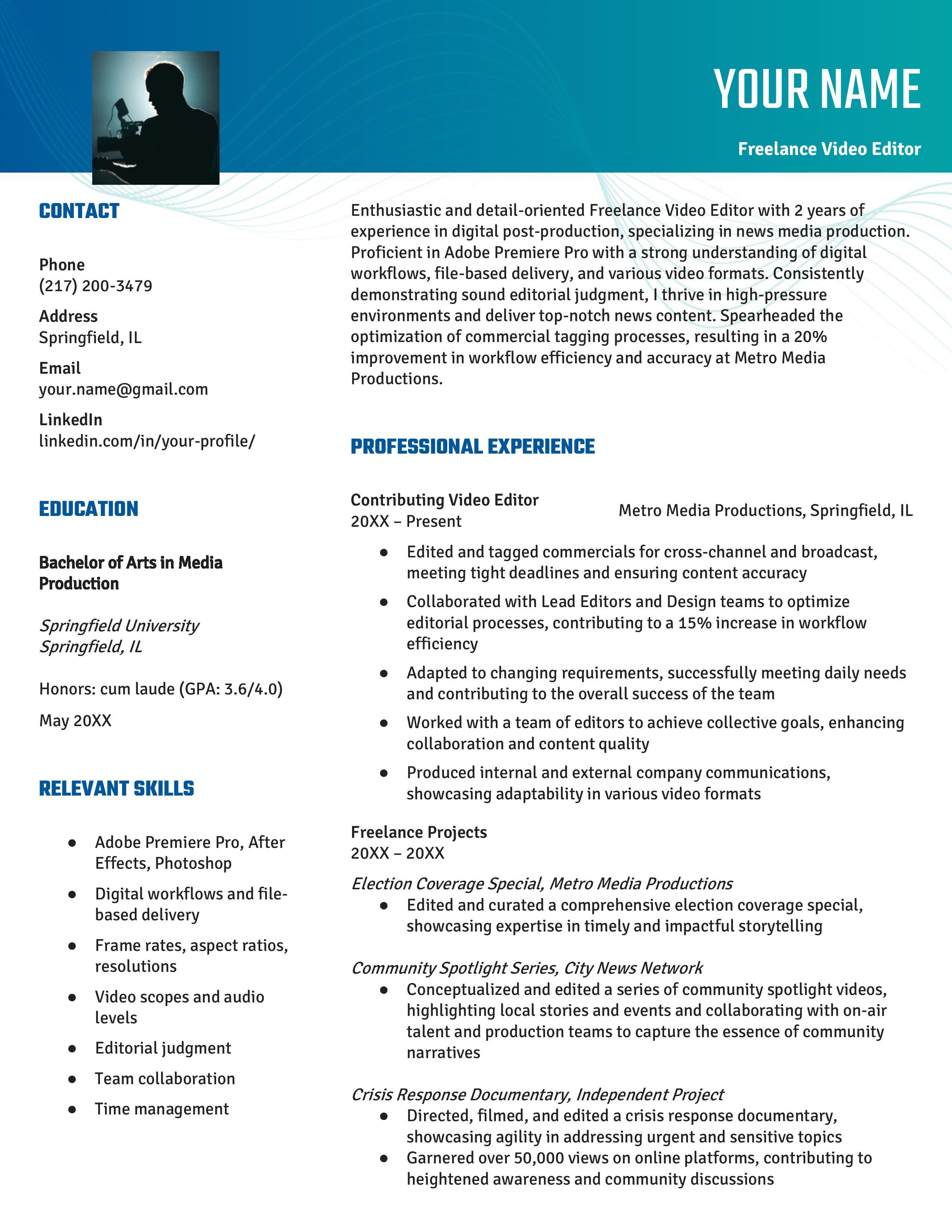 - Volunteer Work: Consider including volunteer work, for example, editing video for non-profit work or local community projects.